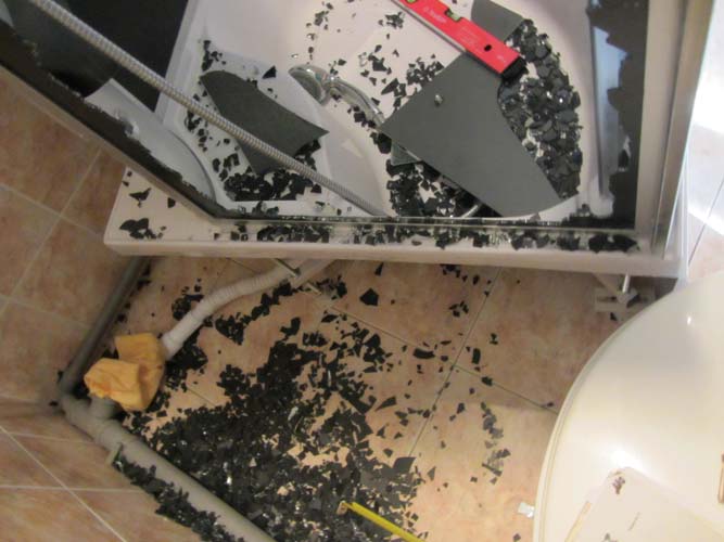 Сквозная трещина акрилового поддона, образовавшаяся по причине наличия скрытого конструктивного производственного дефекта